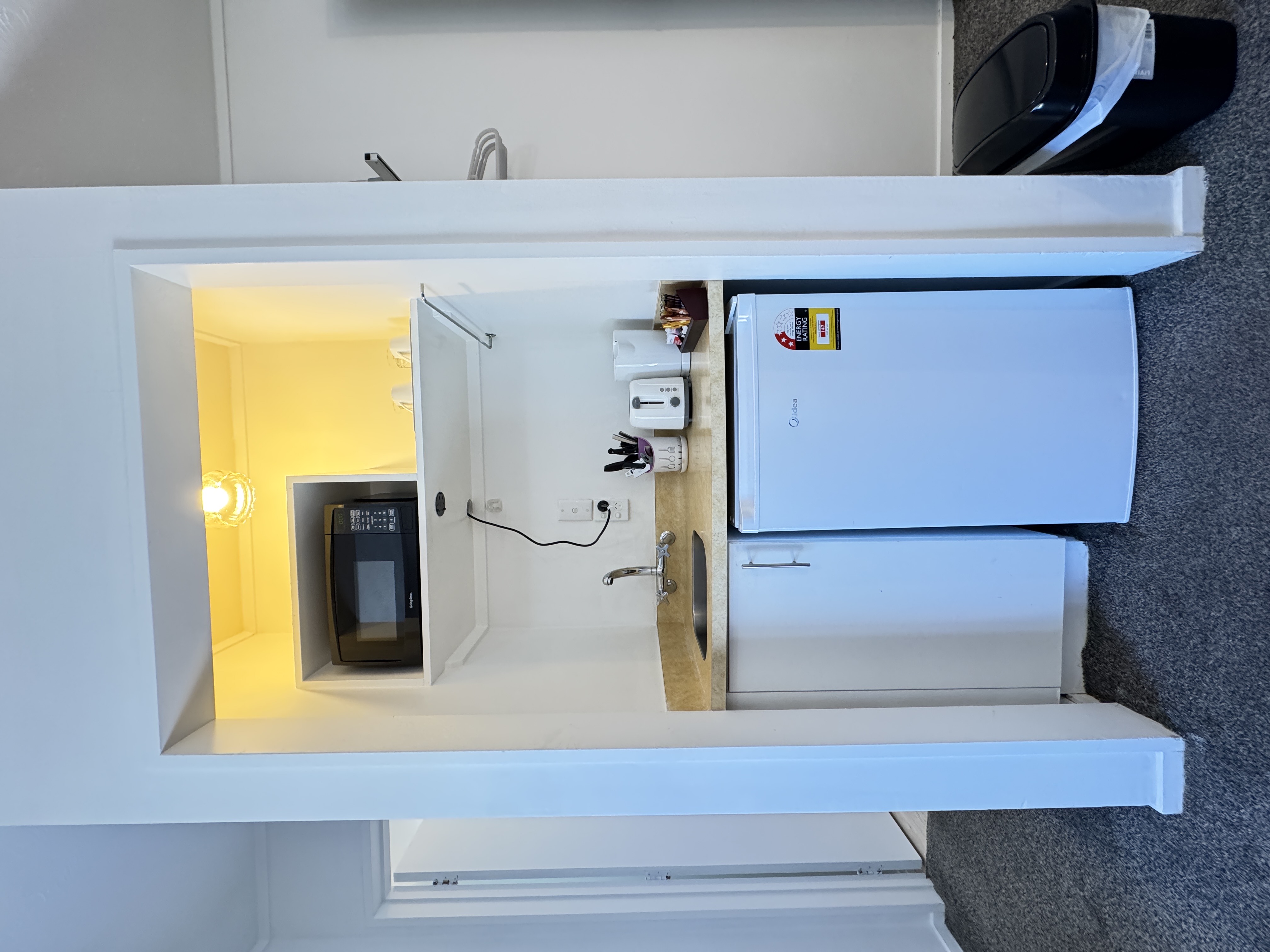 The room is equipped with a heater, fan, hairdryer, and Free Wi-Fi. It also includes a kitchen with cooktop, basic crockery, and cutlery. Complimentary tea, coffee (including decaf), hot chocolate, sugar, and milk are provided. The bathroom comes stocked with shower gel, hand wash, soap, toilet paper, towels, and a hairdryer for your comfort.