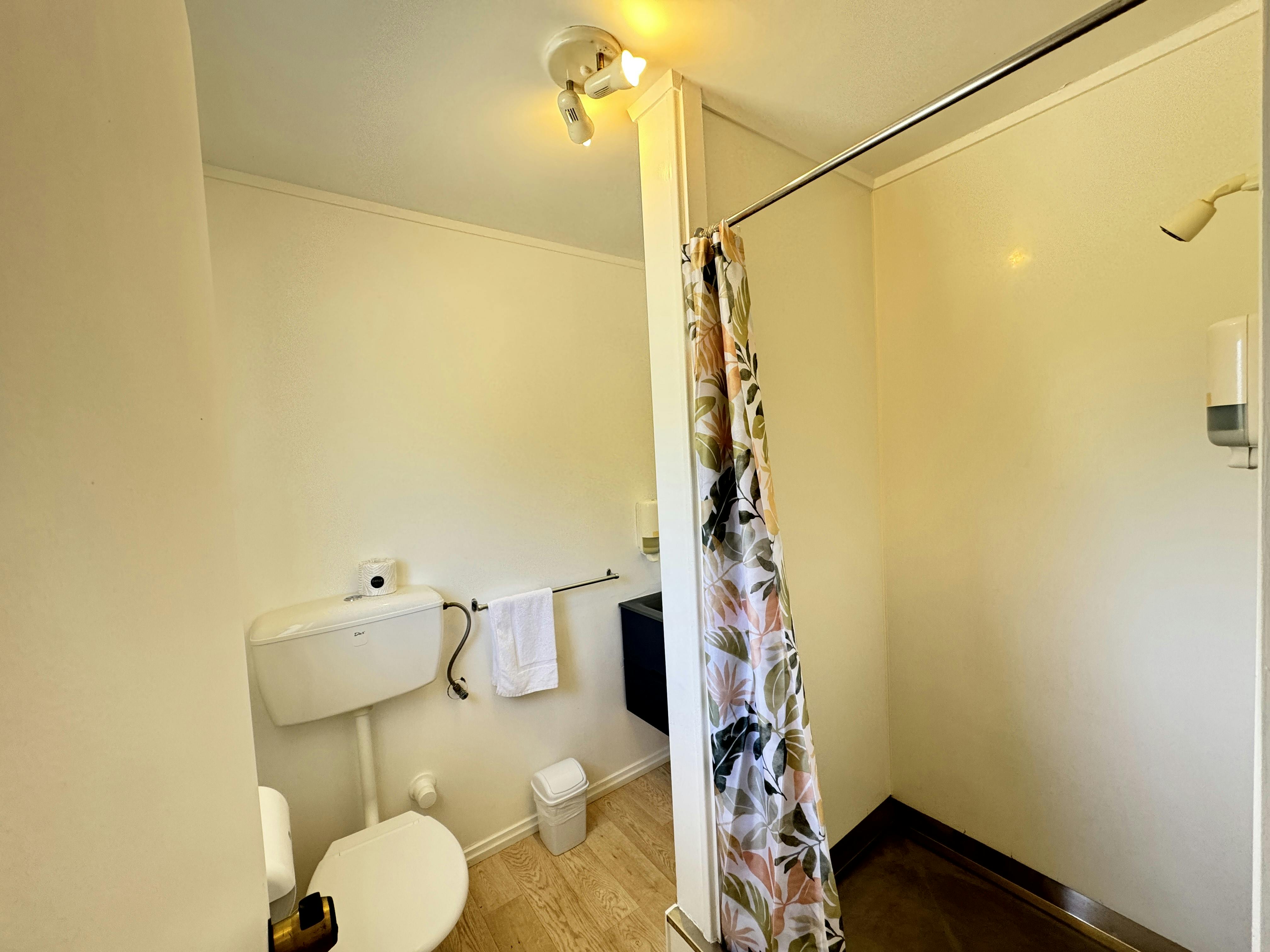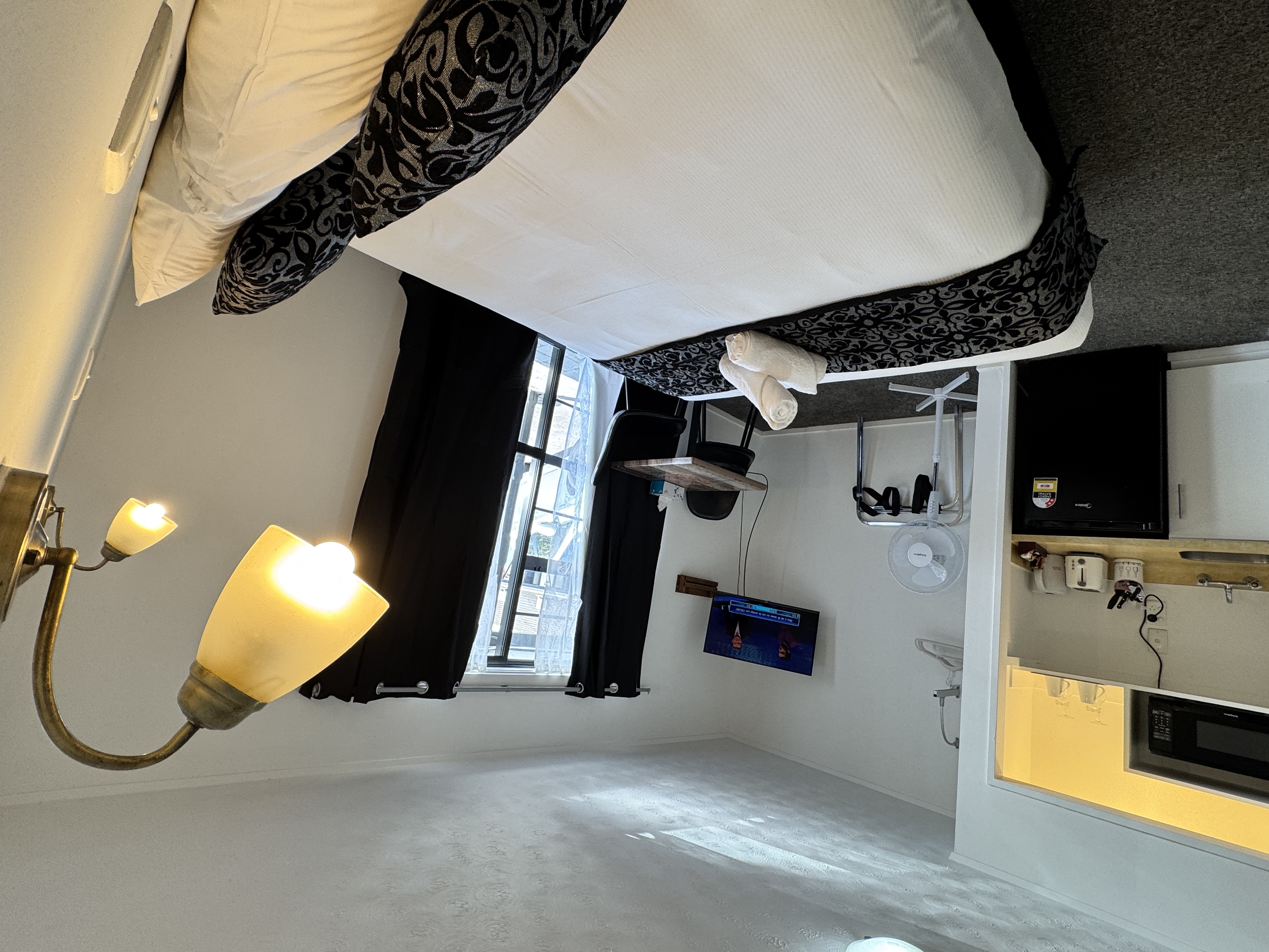 This suite accommodates 1-2 guests with one queen bed. In-room amenities including fan, heater, shower, and a small kitchenette with microwave, kettle, toaster and basic cutlery and cookery. Complimentary tea, coffee (including decaf), hot chocolate, sugar, and milk are provided for your convenience. The Private bathroom is stocked with shower gel, hand wash, soap, toilet paper, towels, and a hairdryer, ensuring a comfortable and relaxing stay.