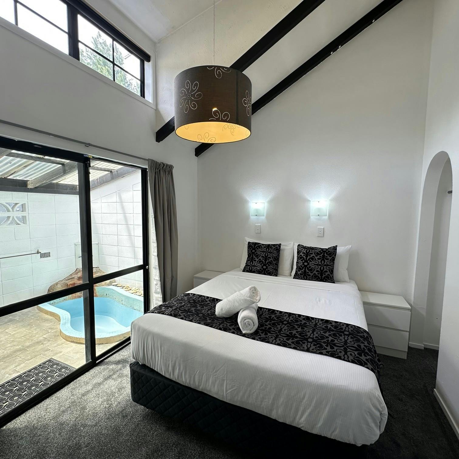 This room features one queen bed, two single beds upstairs, and one single bed in the living room. It’s ideal for families or groups of up to 5 people. Enjoy in-room amenities including air-conditioning, a mineral pool, a shower, a kitchenette, crockery and cutlery. Complimentary tea, coffee (including decaf), hot chocolate, sugar and milk are provided. The bathroom is stocked with shower gel, hand wash, soap, toilet paper, towels, and a hairdryer. A cot or crib can be arranged upon request (subject to availability, not included).
